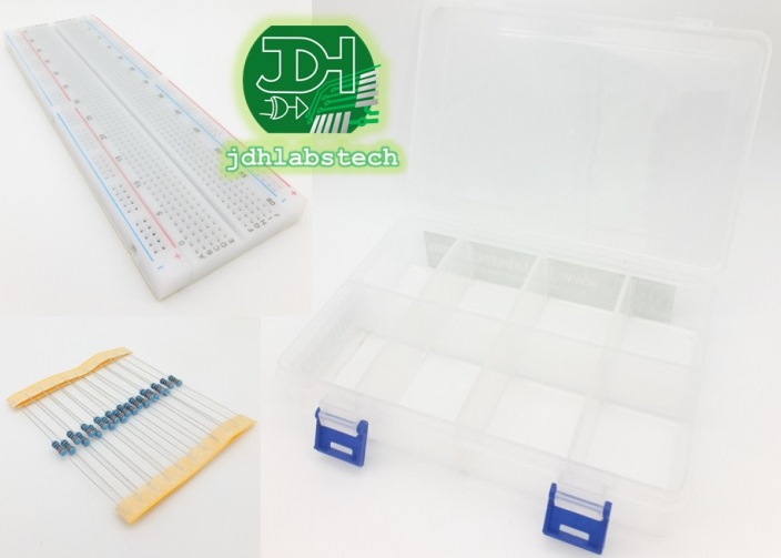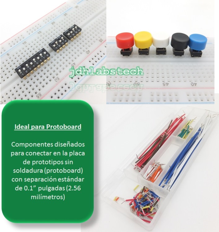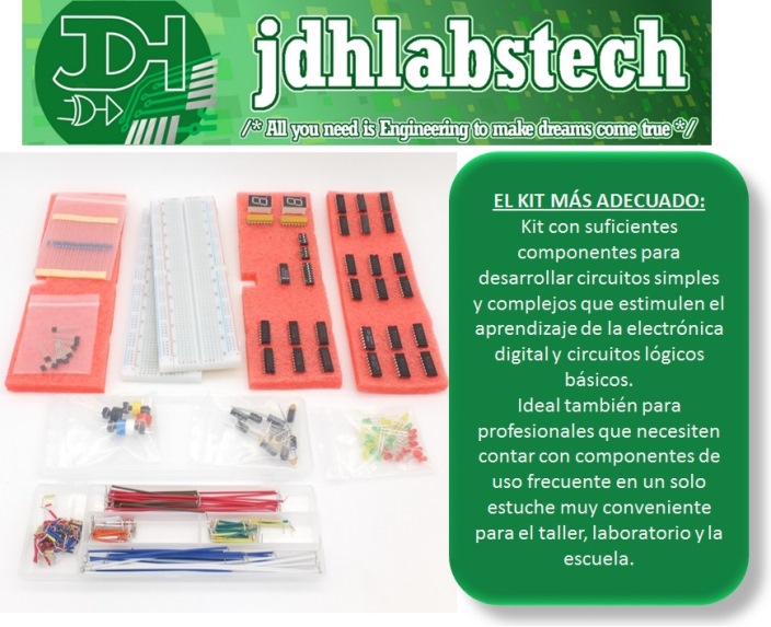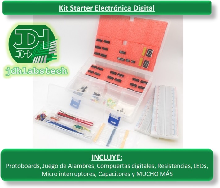 Incluye 2 protoboards grandes de 830 puntos, cables precortados multicolores, paquete de resistencias, paquete de condensadores, compuertas lógicas, flip-flops Y MÁS !!!! ...