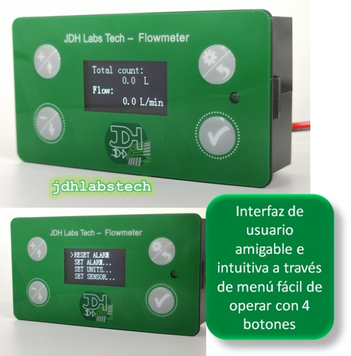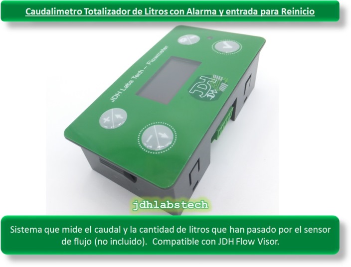 Caudalímetro Contador de Litros Totalizador con Alarma Programable y entrada digital para reinicio