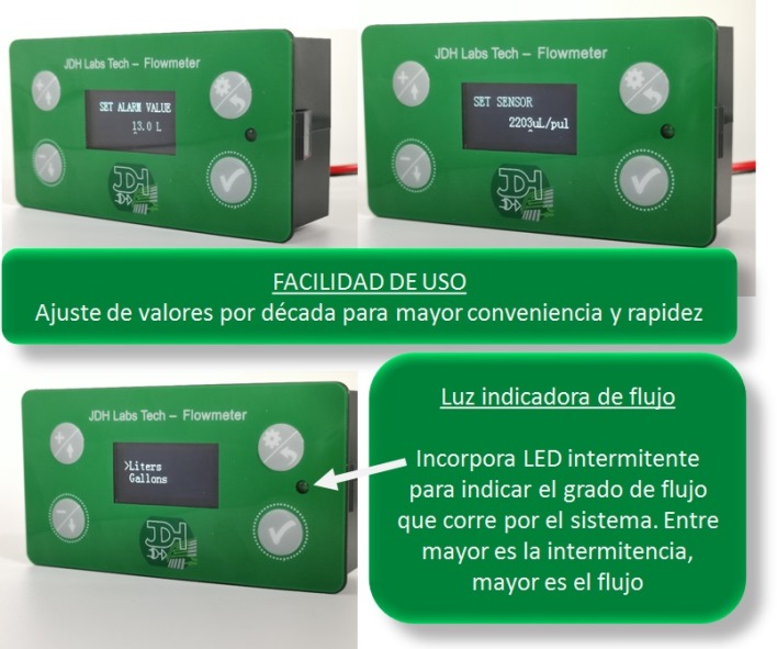 Puede ajustarse para usarse con sensores de flujo con salida de pulsos de cualquier marca.