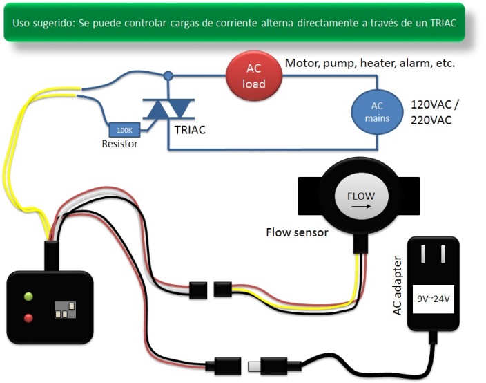 Uso sugerido: Se puede controlar cargas de corriente alterna directamente a través de un TRIAC externo (ver opciones)